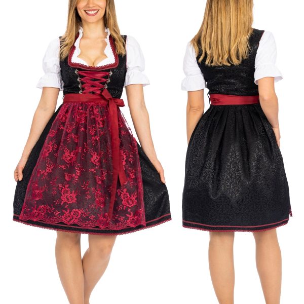 Women’s German Dirndl Dress Black Red Traditional & Cultural Trachten
