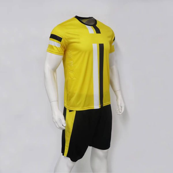 Ergonomic Athletic Fit: The uniform boasts a modern, Slim-Fit Athletic Cut, providing a streamlined silhouette that reduces bulk and prevents bunching. The jersey includes subtle side-seam vents for improved mobility, while the shorts feature an elastic waistband with an inner drawcord for a secure, customizable fit. The ergonomic construction ensures total freedom of movement, essential for sprinting, pivoting, and striking the ball.