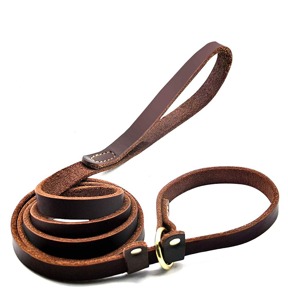 • Smooth and refined leather leash is half an inch wide with a non-rust hook and rivets.