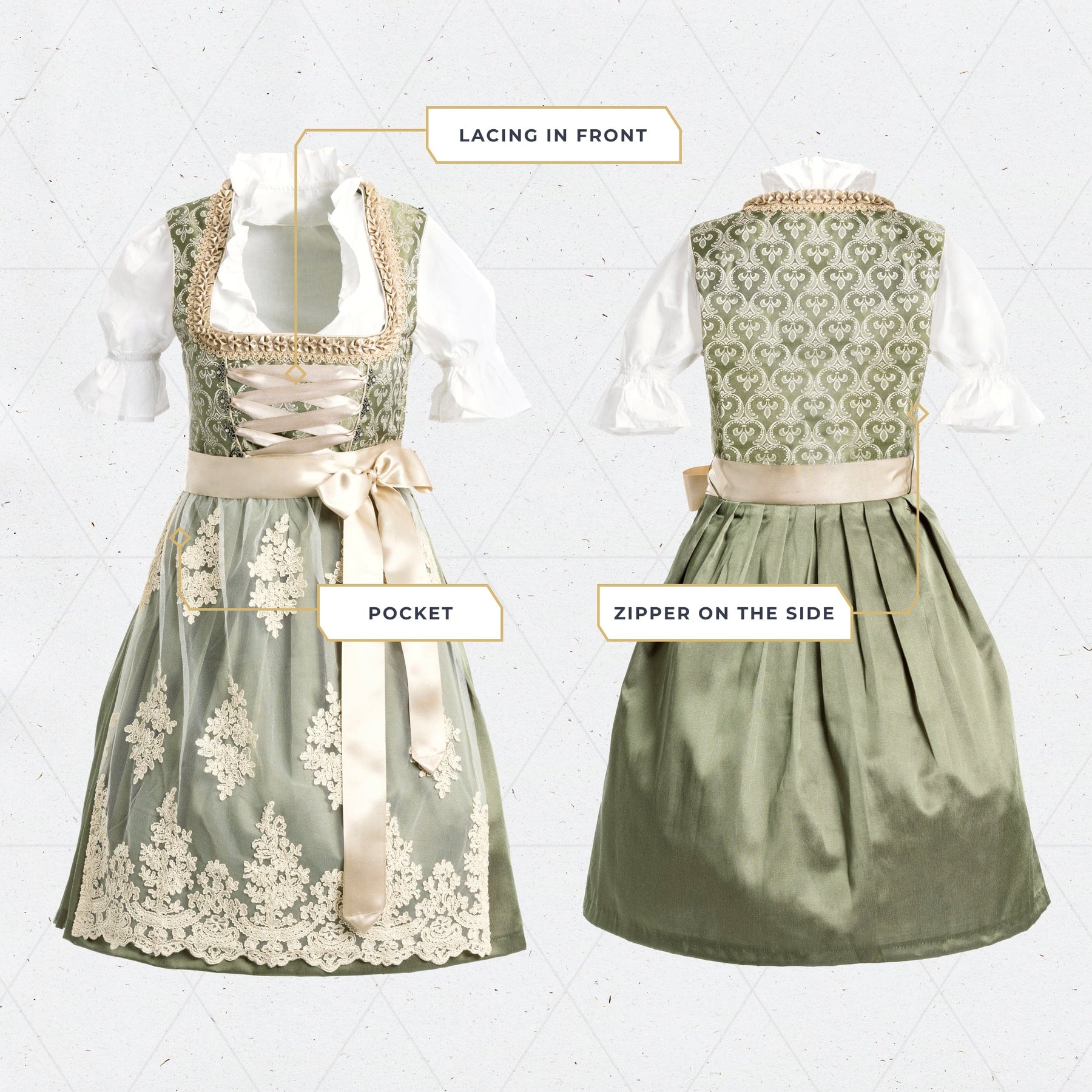 Home Trachten Garments Dirndl Women’s German Dirndl Dress Golden Green Traditional & Cultural Trachten